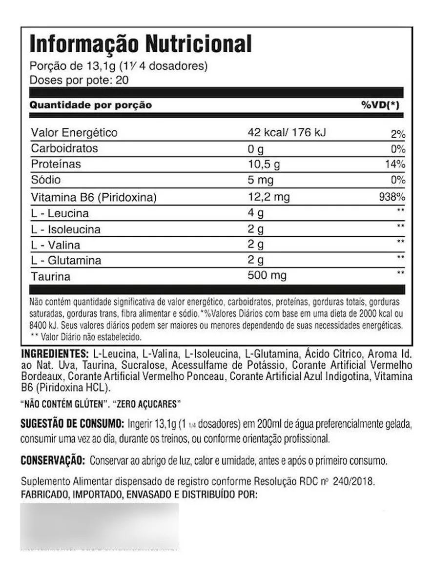 L-Glutamina: Um aminoácido importante para a recuperação e manutenção do tecido muscular. A L-Glutamina ajuda a reduzir o catabolismo muscular e a apoiar o sistema imunológico, que pode ser comprometido após treinos intensos.