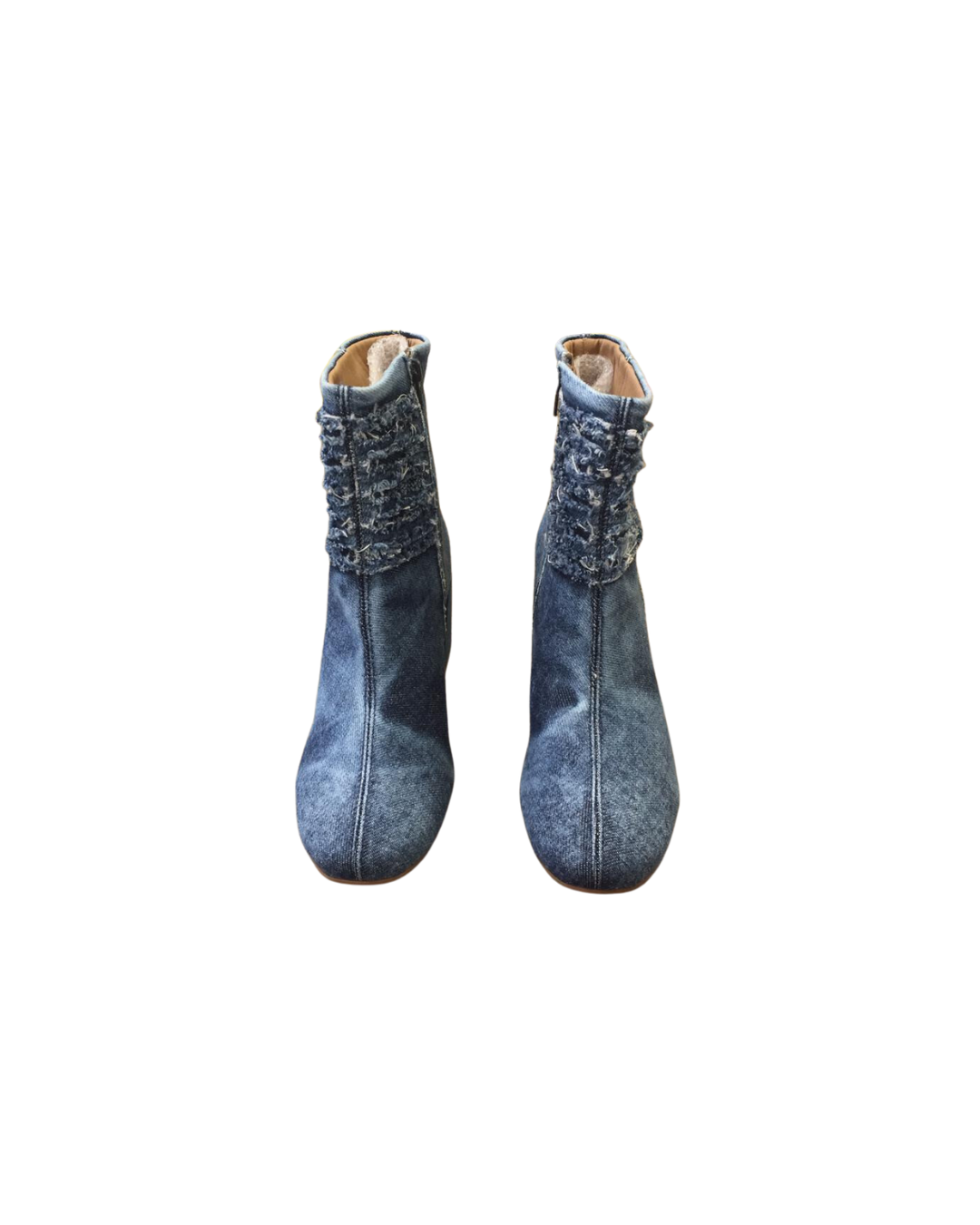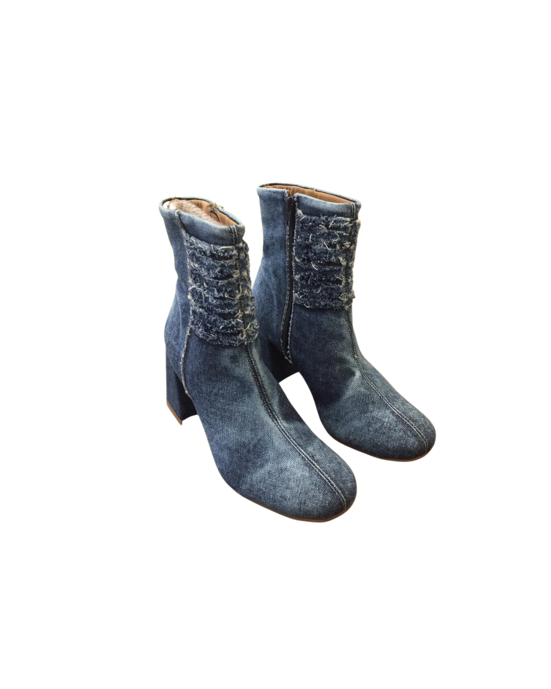 Bota Jeans com recortes, tem cano médio, salto bloco de 7 cm forrado em jeans e bico redondo, sola em TR que possibilita muita estabilidade além da flexibilidade e resistência. Possui fechamento de zíper na lateral interna. As maiores tendências da temporada, reunidas em uma bota cheia de personalidade!