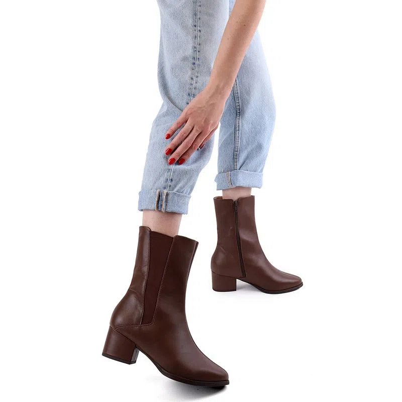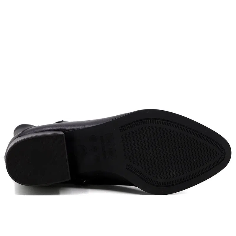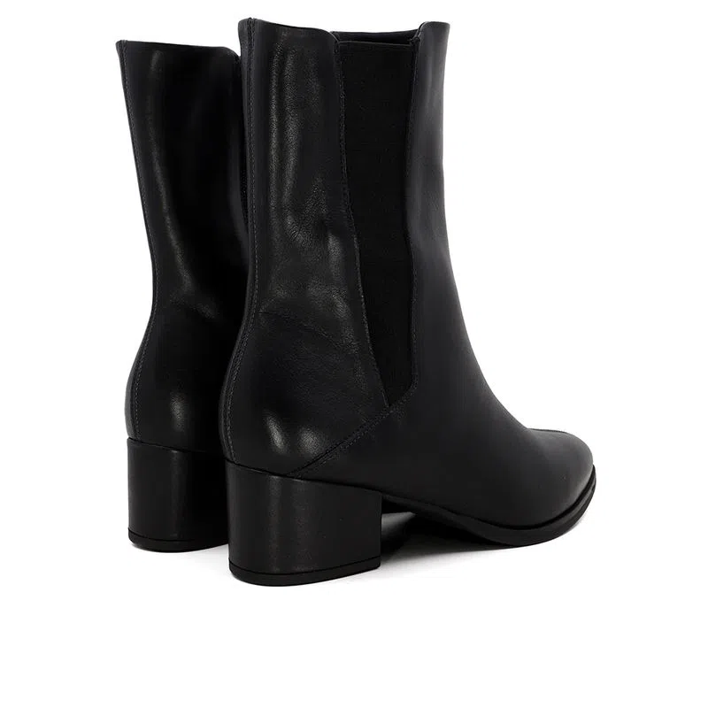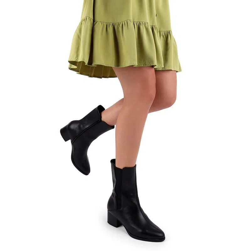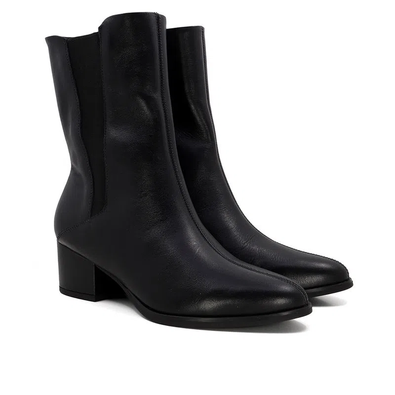 Bota salto bloco, cabedal em couro napa, fechamento em ziper. O modelo possui tecnologia Memória Permanente, com material de capacidade de retorno e mantêm o formato dos seus pés na palmilha.