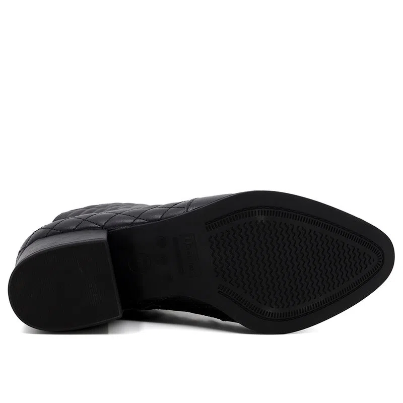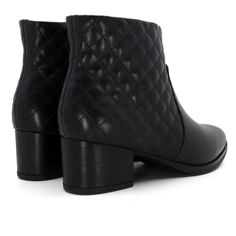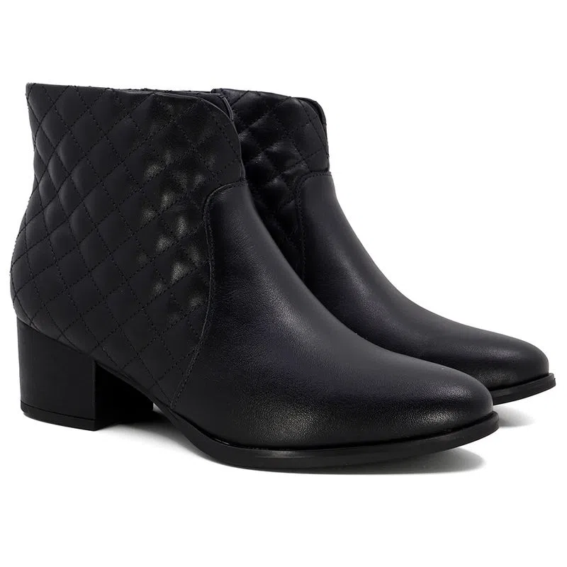 Descrição EspecificaçõesAvaliações Descrição Bota salto bloco, cabedal em couro napa bota na cor preta fechamento em ziper detalhes matelassê. O modelo possui tecnologia Memória Permanente, com material de capacidade de retorno e mantêm o formato dos seus pés na palmilha Especificações Tipo de Bico Fino Gênero Feminino Material Couro Tipo de Salto Bloco Altura do Salto 3,5 cm Avaliações Seja o primeiro a avaliar Este item ainda não foi avaliado.