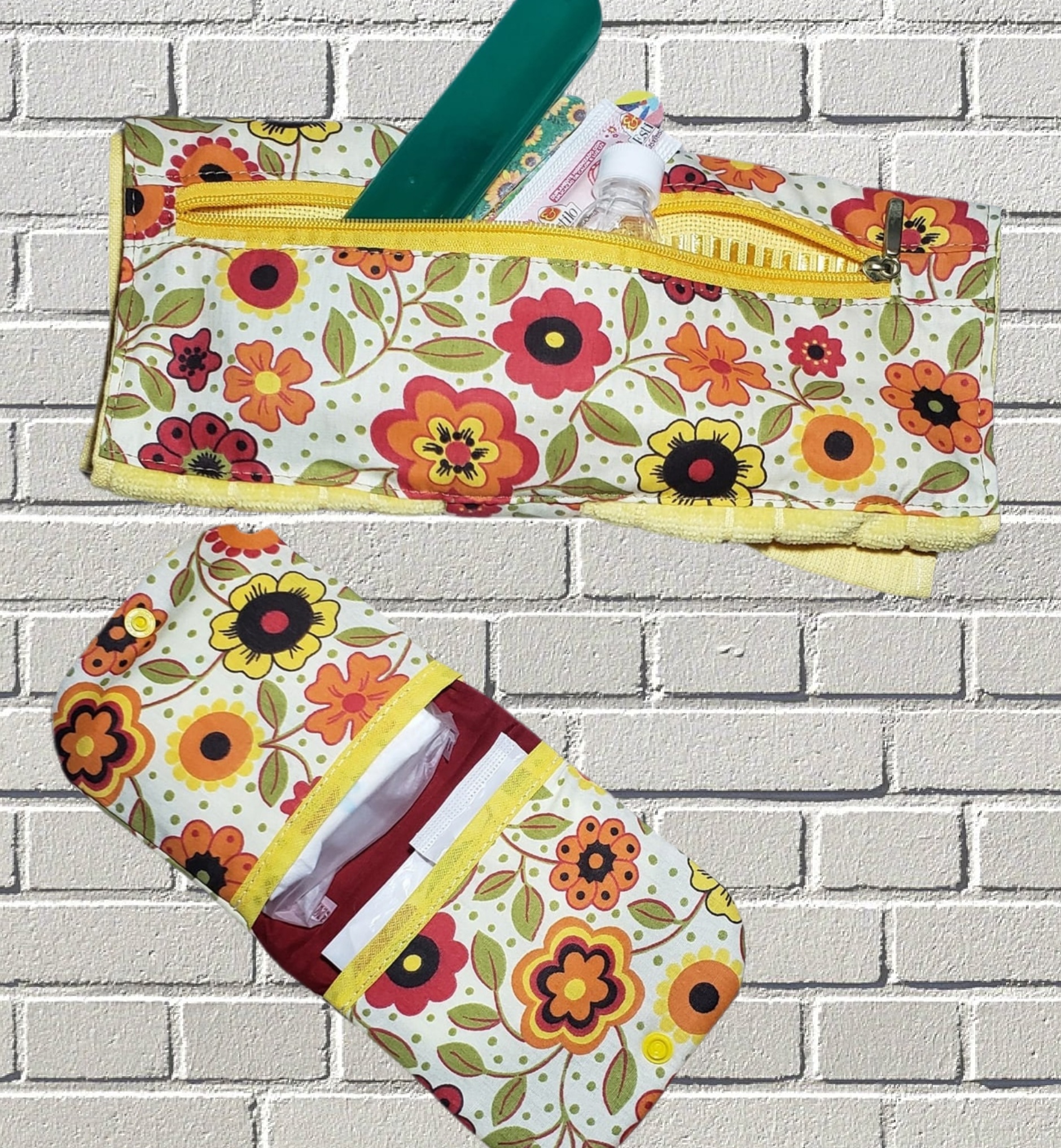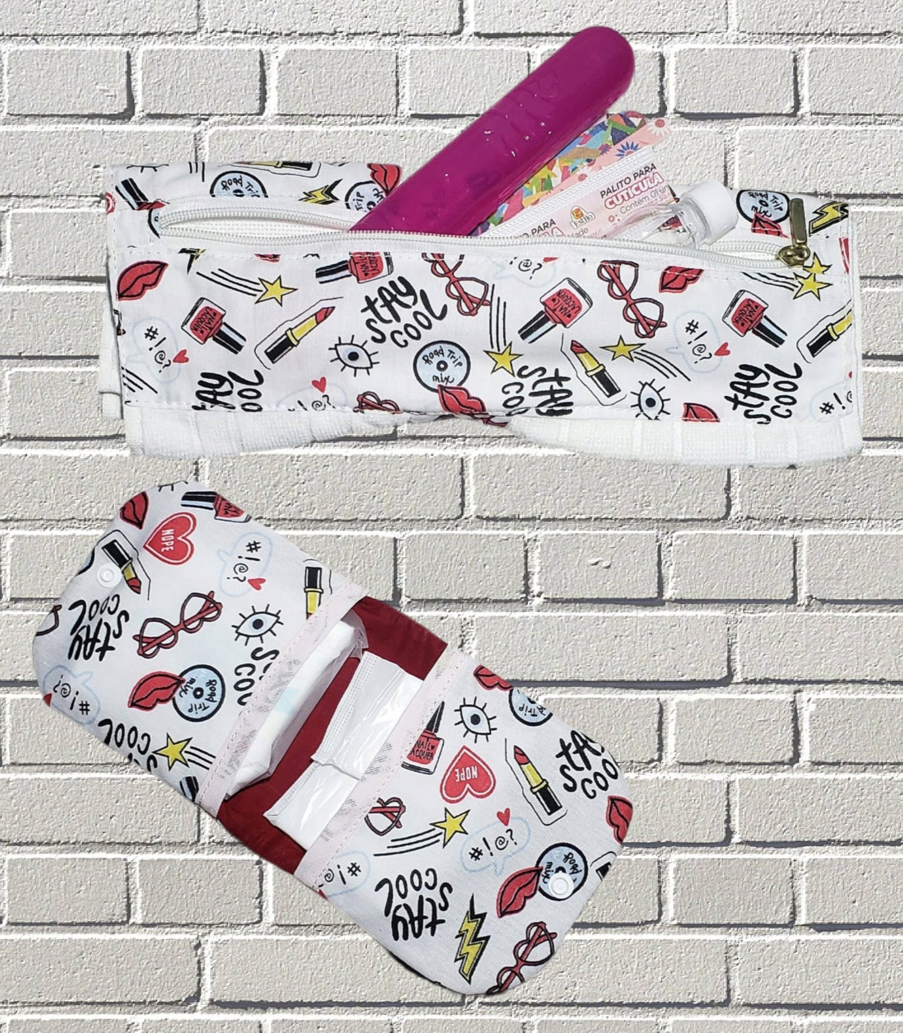 Olha esse kit higiene em tecido 100% algodão: é uma toalhinha de mão que dobrada fica uma bolsinha (A12xL30 cm) e ainda tem um zíper para guardar os "básicos" da Moça, que acompanham o kit - porta escova de dentes e porta sabonete ou álcool gel. Junto vem o porta absorventes ou o que você quiser em tecido com fechamento por botão de pressão (A12xL12 cm). Lindeza e belezura!