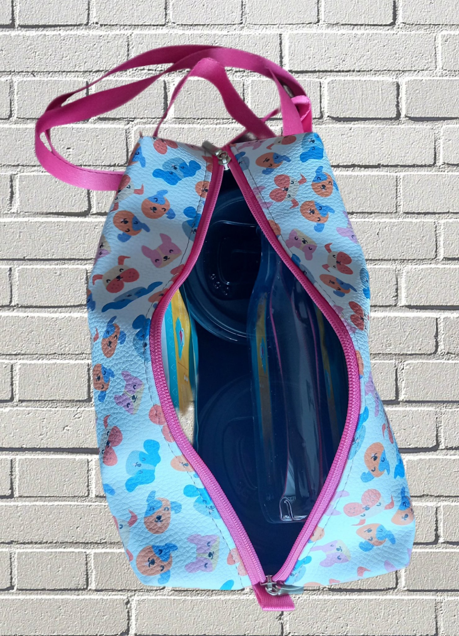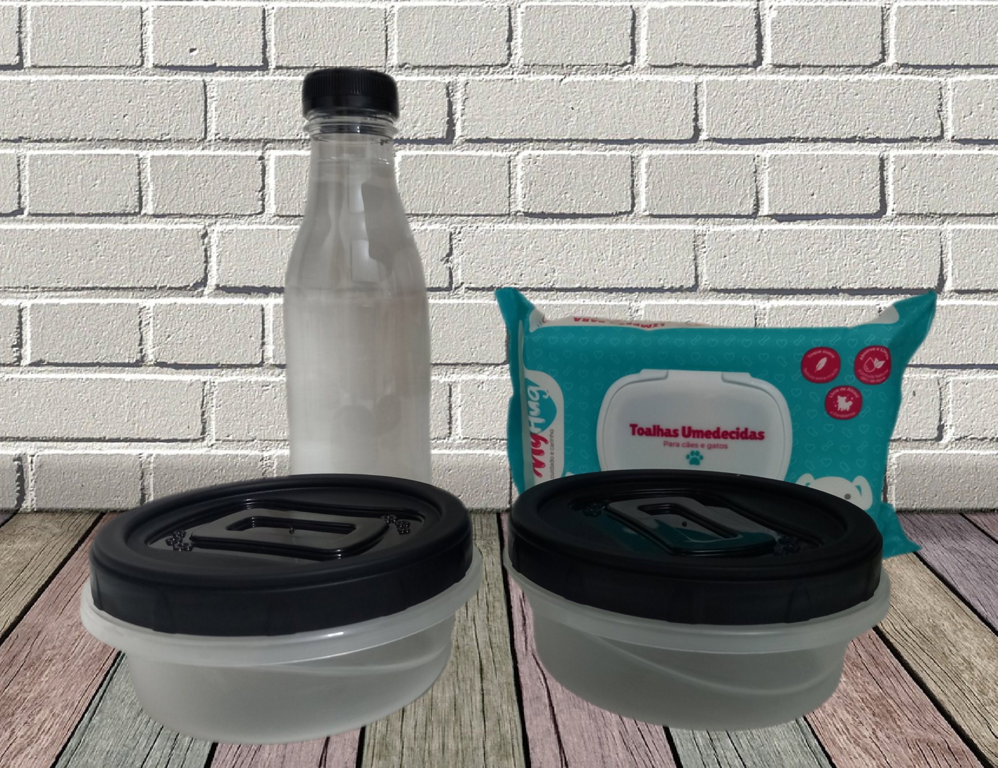 Uma malinha em material sintético para você sair com seu bicho e ter tudo à mão e em grande estilo (A13xL26xP13 cm). Já vem "recheada" com dois potinhos que cabem separados, para um já vir cheio de ração ou petiscos e o outro para água, uma garrafinha de 500 ml e uma embalagem com 50 lencinhos umedecidos (que serve para gatíneos e cachorríneos). Não dá para ficar sem ela, né, Moça? É sair para passear ou viajar e arrasar com seu amor de quatro patas. Põe buniteza nisso!