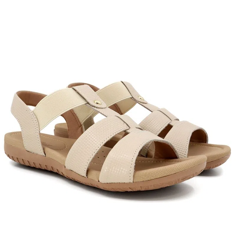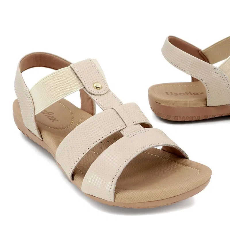Sandália Salto Anabela Usaflex Couro Com Elástico