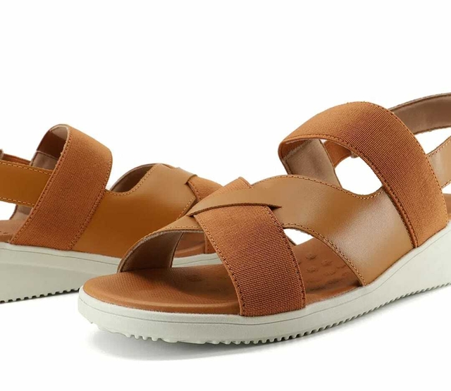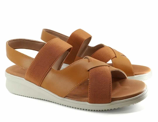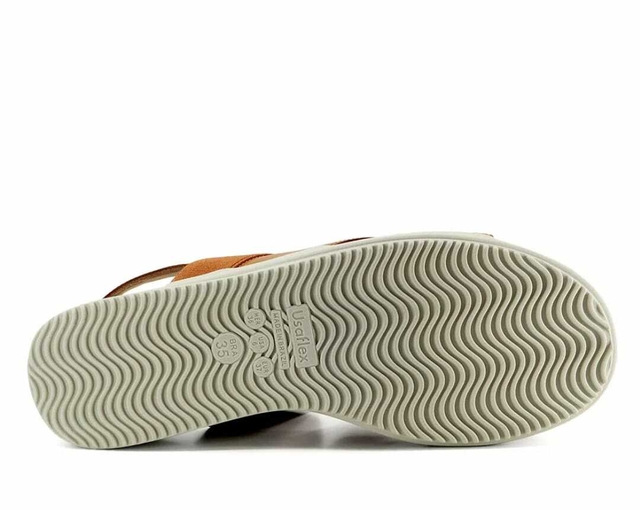 Sandália Usaflex Salto Bloco Couro Tira Trançada
