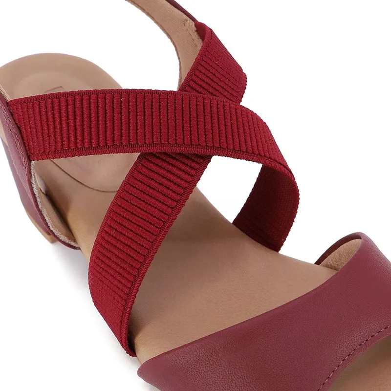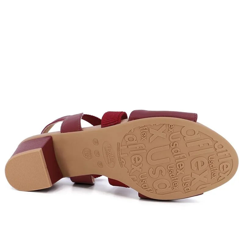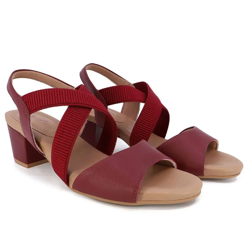 Sandália em cabedal napa valise na cor rebu com elástico. O modelo possui tecnologia Calce Fácil, com modelagem inteligente em adaptar o calçado a ergonomia dos pés.