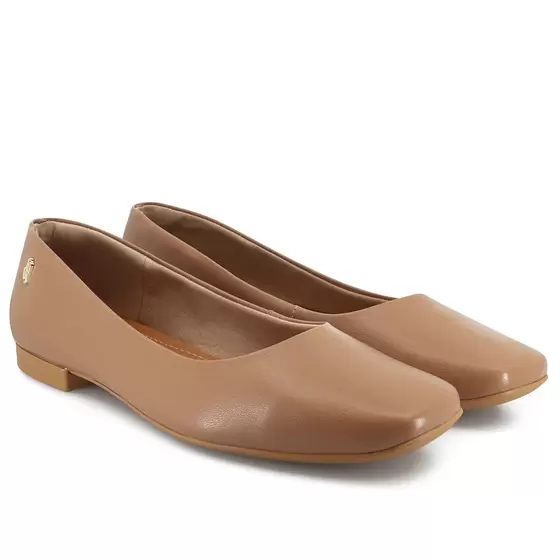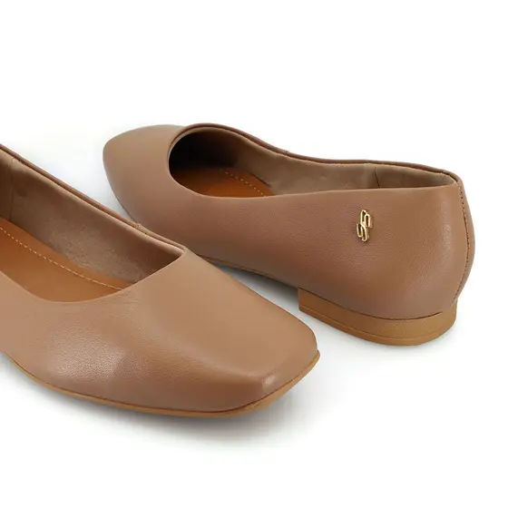Sapatilha bico quadrado em couro liso camel. O bico quadrado traz novidade e modernidade para a sapatilha, um item coringa no closet feminino.