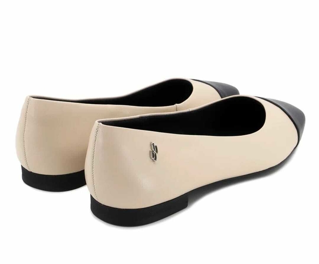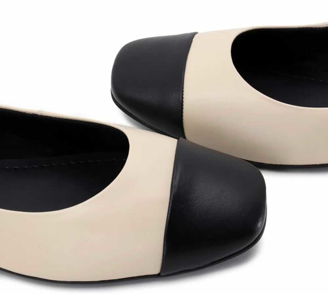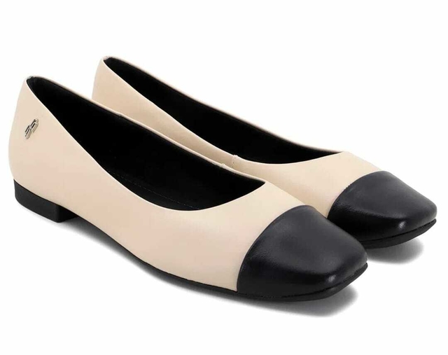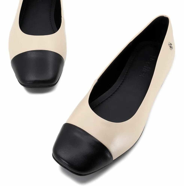 Sapatilha em couro na cor vanilla com detalhe em preto. O modelo possui tecnologia Memória Permanente, com material de capacidade de retorno e mantêm o formato dos seus pés na palmilha.