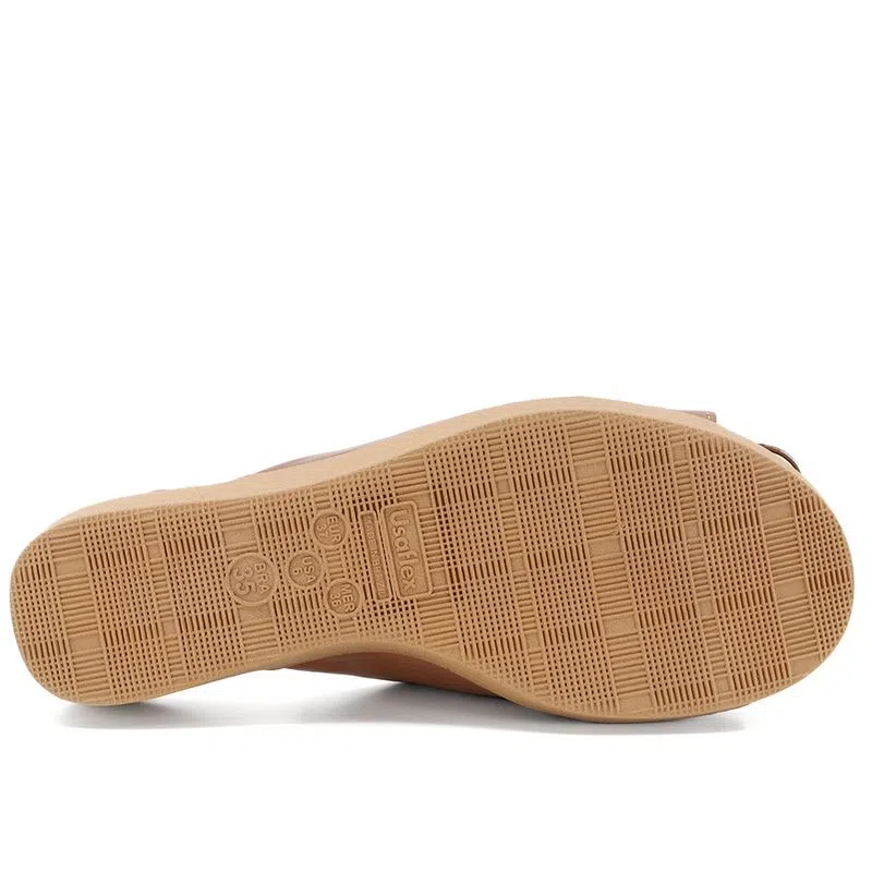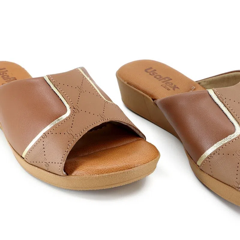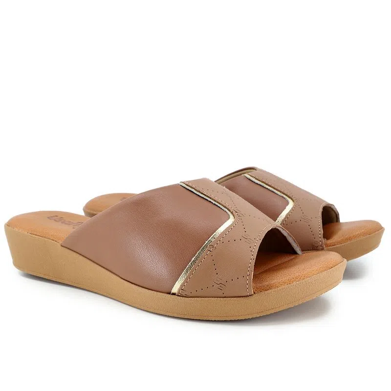 Tamanco plataforma bicolor em couro liso camel e prata velha com monograma. O monograma, um clássico, agrega elegância e sofisticação para o modelo.
