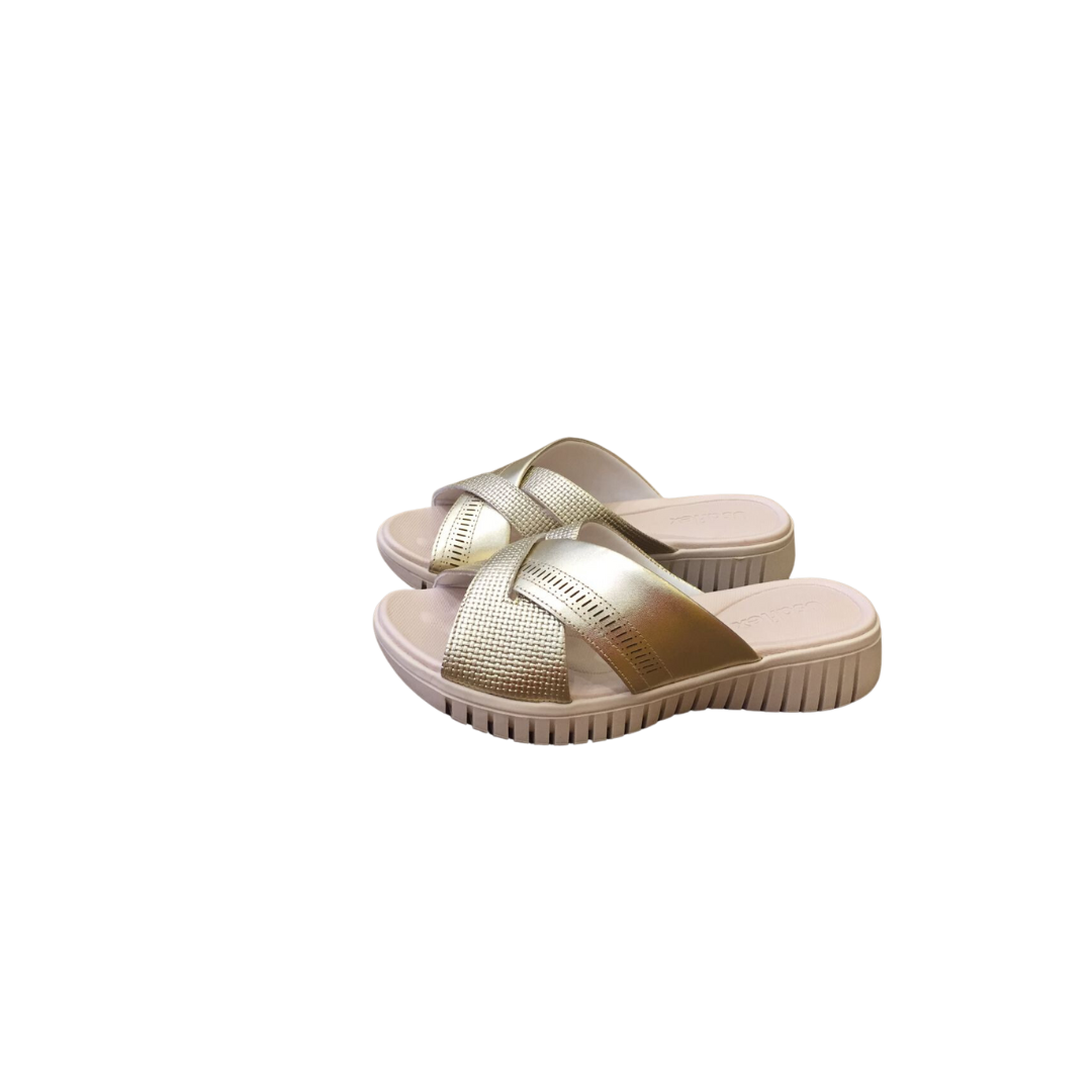 Tamanco em couro mini tresse e napa valise na cor prata velha com detalhe em laser. O modelo possui tecnologia Antibacteriano, com forro que reduz a propagação de fungos e bactérias.